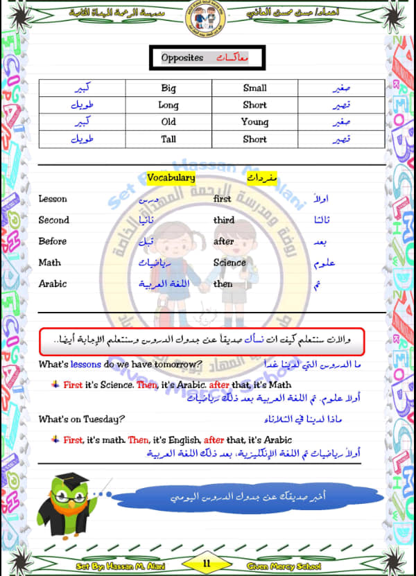 ملزمه شرح مفصله ولتسهيل انكليزي الرابع الابتدائي للعام 2020 - 2021 للوحده الاولى Unit 1 للاستاذ حسن العاني