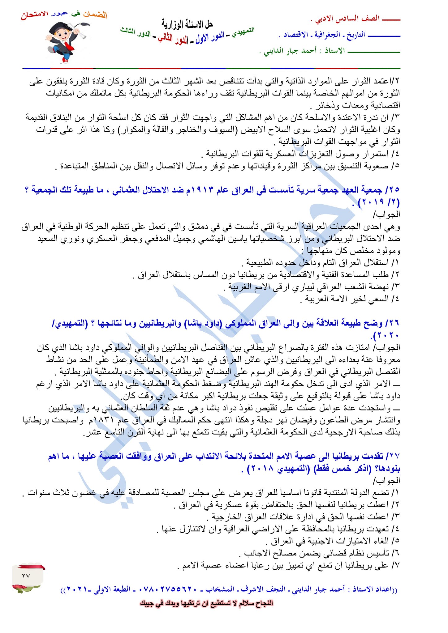 من ملزمة التاريخ للاسئله الوزاريه المهمه