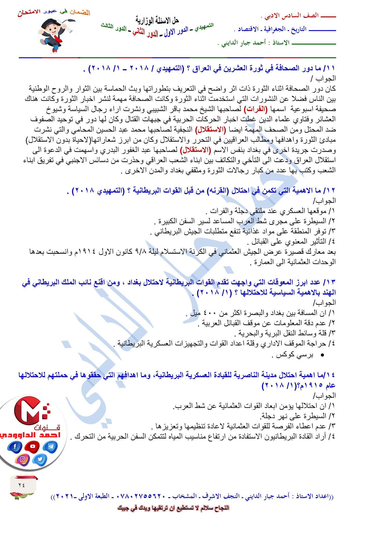 درر التاريخ اسئلة وزاريه لكل الادوار منذ تغير المنهج للسادس الادبي مرتبه حسب الفصول للاستاذ احمد جبار الدايني للعام 2020 تعاريف وتعاليل وفرغات واجب عن ما يلي