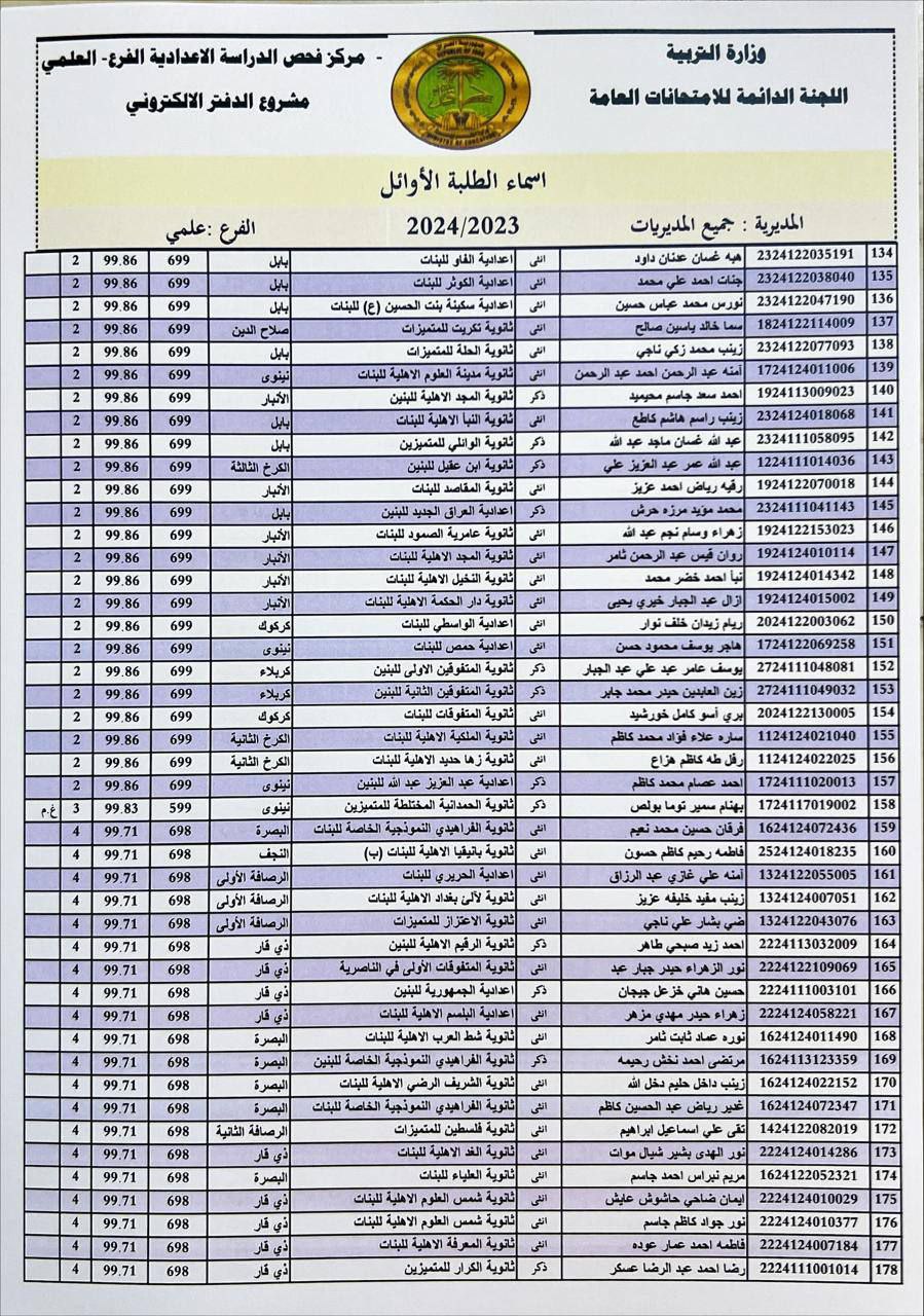 اسماء الاوائل على العراق صف بعد اعلان نتائج السادس اعدادي للفرعين العلمي والادبي للعام الحالي 2023-2024 في عموم البلاد
