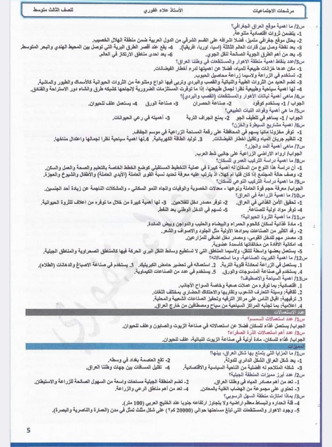 ملخص ومراجعة شامله في مادة الاجتماعيات (تاريخ , جغرافية , وطنية) لصف الثالث متوسط ملف pdf وصور عدد 20 صفحة للاستاذ علاء غفوري